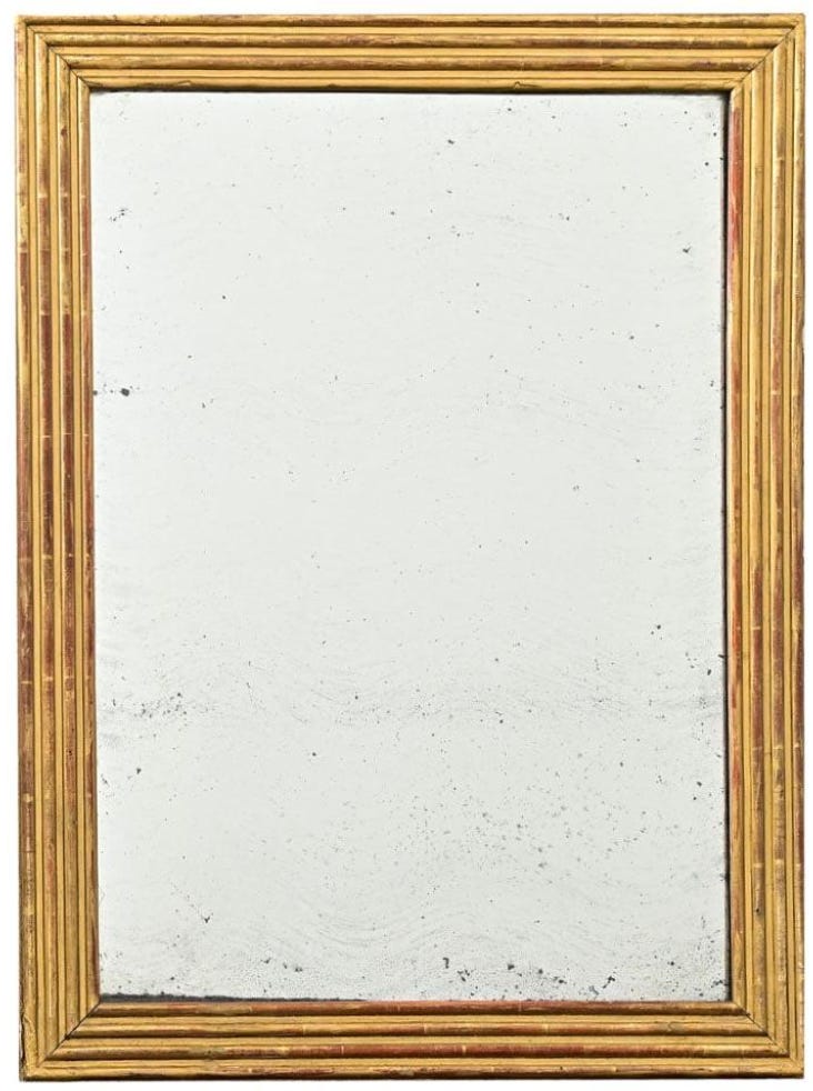 If you are looking to add a bit of patina to your space, I would focus on items upholstered in leather and accent tables, rugs, mirrors, art or lamps. These smaller pieces can bring a visual weight and interest to a space especially if the rest of your larger upholstered pieces are new. Below are a few favorite finds that would add a touch of history to any room: