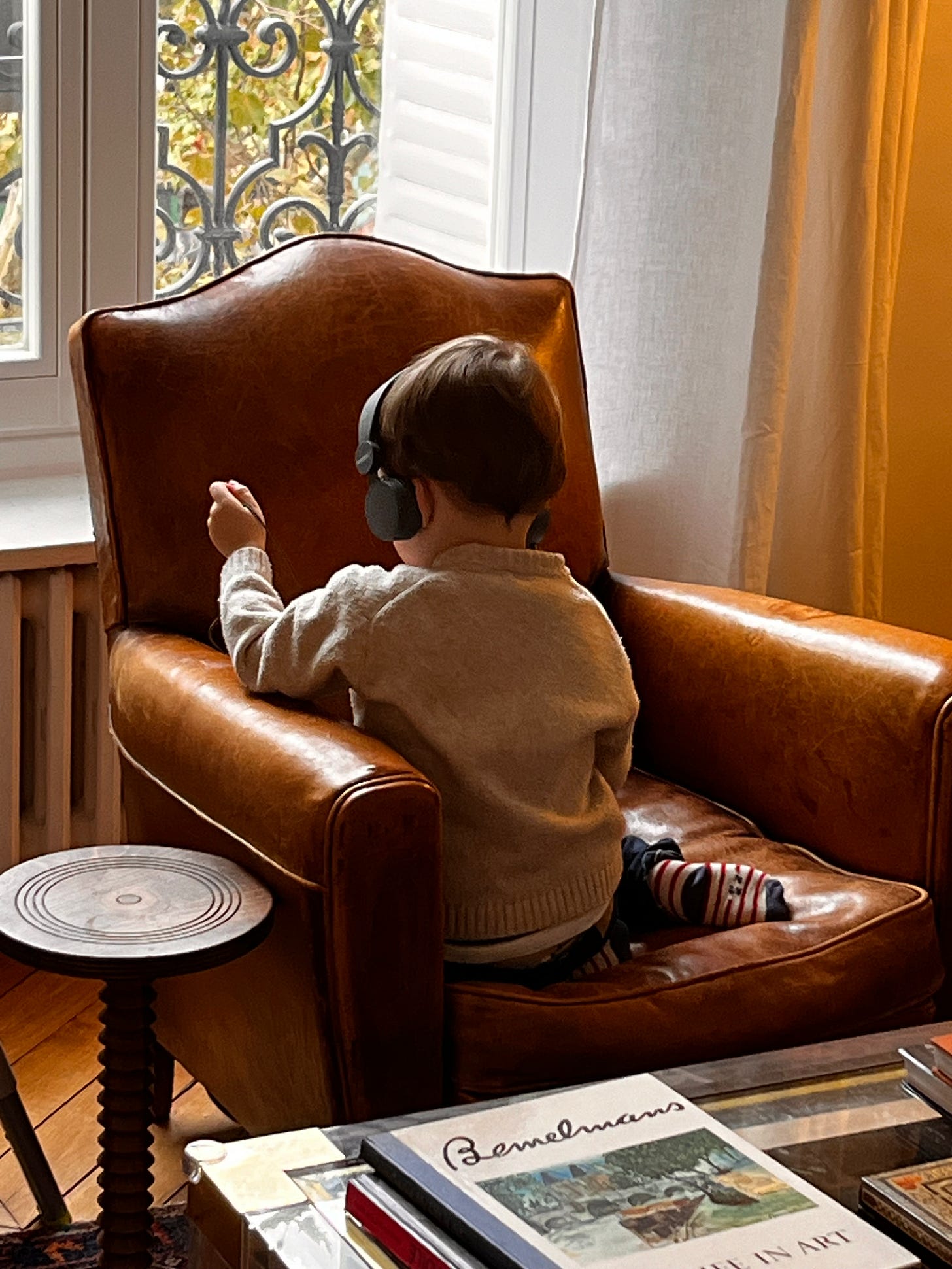 Several months after the initial postpartum fog begin to lift, I looked around our apartment and started taking inventory of what we still needed. Thankfully most of our furniture worked well from our last apartment, but I immediately knew our living room needed that perfect, leather armchair. A chair where I could languish and read the Sunday paper, spend afternoons reading with my kids curled up in my lap, or offer a comfortable seat to a friend who has stopped by for a quick visit. I also knew I wanted a vintage chair, specifically a French chair from the 1930s or 1940s. So I started the hunt and after several months found one via Selency, a resale site selling European antique and vintage furniture.